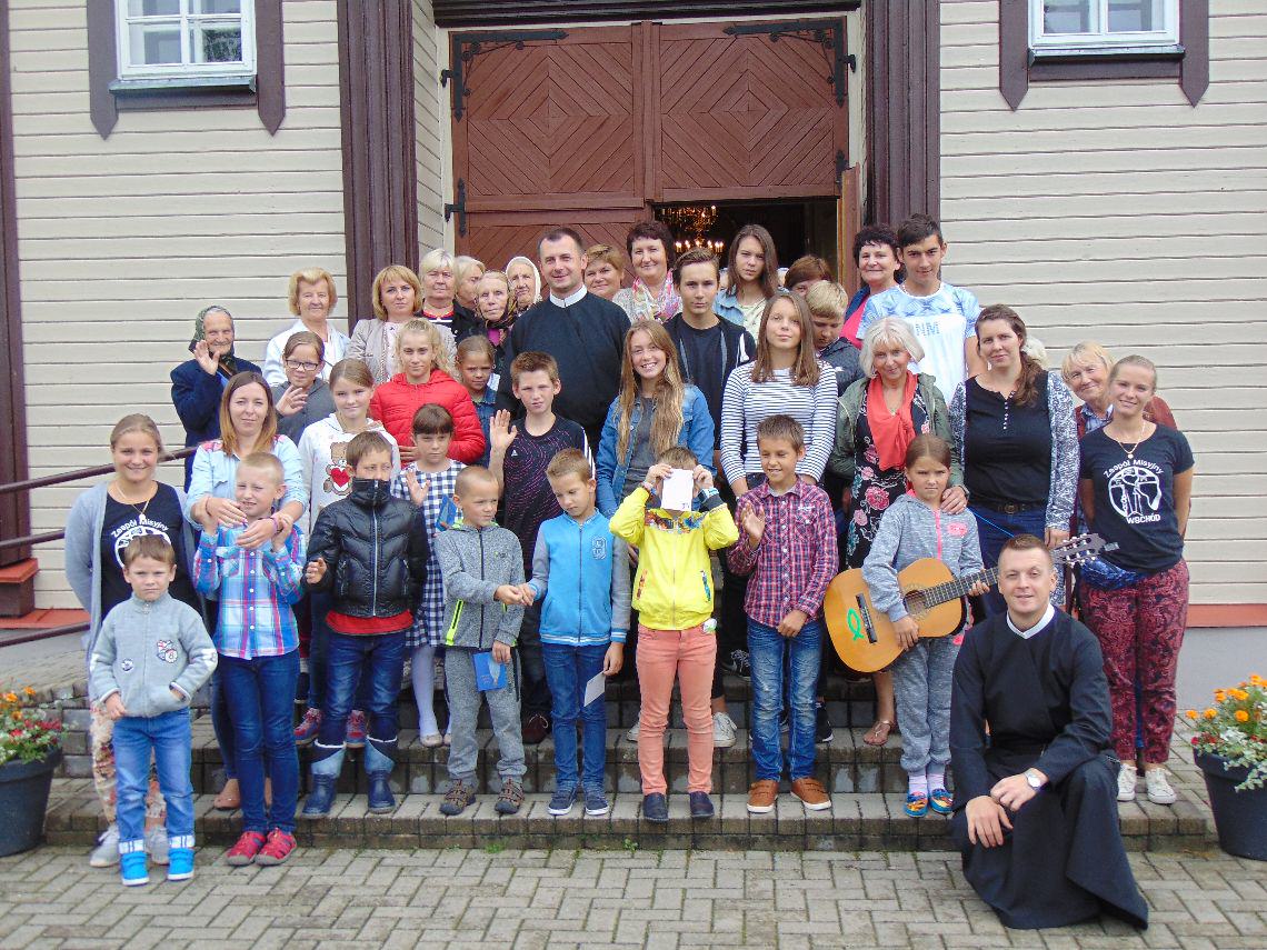 Jak bardzo był to pracowity czas dla członków Zespołu Misyjnego „Wschód”, niech powie kilka liczb. Jak w roku ubiegłym tak i teraz Zespół przeprowadził 8 serii rekolekcji – łączny czas trwania rekolekcyjnych wyjazdów wynosił bez mała 60 dni. Zaangażowanych było 33 animatorów świeckich, 14 braci kleryków z tuchowskiego seminarium, 1 siostra zakonna i 6 kapłanów redemptorystów, o których za chwilę. Tegoroczne rekolekcje objęły około 500 dzieci. Pracowaliśmy w trzech krajach: na Ukrainie (Borysław – parafia redemptorystów, Błozew – nowe miejsce, Strzelczyska i Krysowice – rekolekcje połączone dla obu parafii, Złoczów); na Białorusi (Widze, Szumilino i Grodno – parafia redemptorystów) oraz na Litwie (Soleczniki Małe). Animatorzy przejechali łącznie około 7500 km. Całe to przedsięwzięcie, zarówno duchowe, jak i materialne i logistyczne, byłoby niemożliwe bez wielkiego zaangażowania wszystkich członków Zespołu, którym z całego serca za to dziękuję – za wysiłek podjęty nie tylko latem, ale także podczas poprzedzających je miesięcy przygotowań. A już wtedy działo się wiele. W wielu szkołach naszego kraju zorganizowaliśmy zbiórki materiałów przydatnych podczas letniej ewangelizacji, przeprowadziliśmy niedziele misyjne na terenie całej Polski, animatorzy przygotowali konspekty katechez, wielu z nich zaangażowało się w mozolne segregowanie i pakowanie zebranych rzeczy. A i tak o wielu sprawach wie sam jeden Pan Bóg.