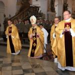 Pielgrzymka rozpoczęła się od uroczystego wejścia pocztów sztandarowych, asysty i koncelebransów do bardzkiej bazyliki przy akompaniamencie bardzkich organów, na których grał Maciej Bator i rogów myśliwskich. Piękne fanfary wykonał Reprezentacyjny Zespół Sygnalistów Myśliwskich Rabiec istniejący przy Zarządzie Okręgowym Polskiego Związku Łowieckiego w Piotrkowie Trybunalskim.