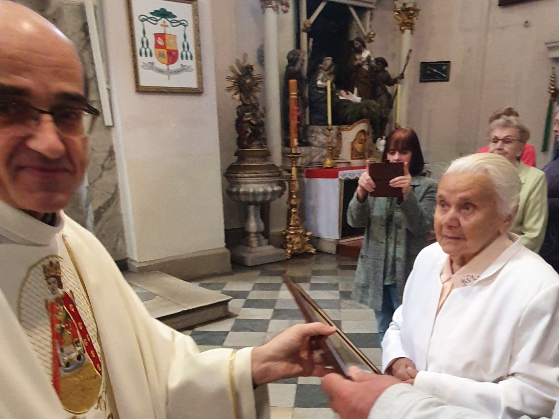 Pani Marianna Ząber należy do wspólnoty parafialnej pw. Nawiedzenia NMP w Bardzie. Całe swoje dorosłe życie chodziła pieszo niemal codziennie do naszego kościoła w Bardzie pokonując w jedną stronę około 2,5 km. Przez wiele lat była członkiem rady parafialnej. Założyła i przez długie lata prowadziła Koło Przyjaciół Radia Maryja w Bardzie. Angażowała się w zbieranie środków materialnych na rzecz tego dzieła. Organizowała przez lata coroczne wyjazdy na pielgrzymki Rodziny Radia Maryja do Częstochowy i do Torunia. Wspierała także Telewizję Trwam w staraniach o wejście na multipleks. Należąc do róży różańcowej od lat modli się regularnie w intencjach Kościoła i wspiera dzieła prowadzone przez redemptorystów.