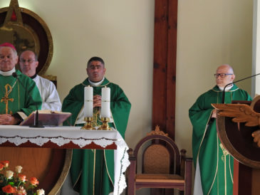 Wraz z biskupem przy ołtarzu modli się ojcowie redemptoryści: o. Marek Urban CSsR oraz o. Piotr Podraza CSsR.