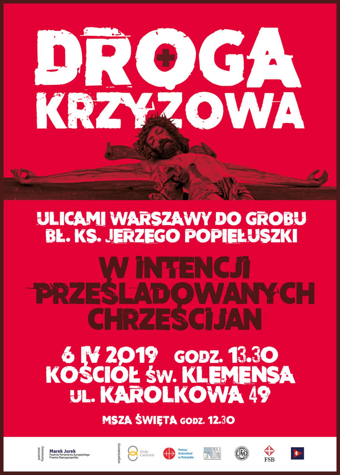 W sobotę, 6 kwietnia 2019 r. o godz. 13.30 przy warszawskim kościele redemptorystów pod wezwaniem św. Klemensa Hofbauera (ul. Karolkowa 49) rozpocznie się Droga Krzyżowa, zmierzająca ulicami Warszawy do grobu męczennika bł. ks. Jerzego Popiełuszki na Żoliborzu.