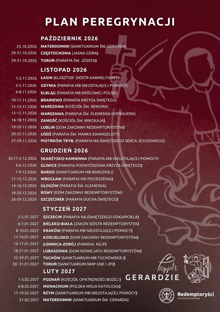 Kalendarium oraz mapę wydarzenia znajdziecie Państwo na stronie internetowej gerard.redemptor.pl oraz na redemptorystowskich mediach społecznościowych.