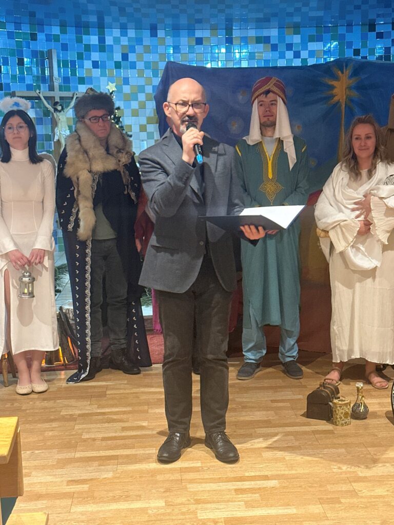 Jasełka w gliwickim NIO w wykonaniu pracowników szpitala i kapelana redemptorysty