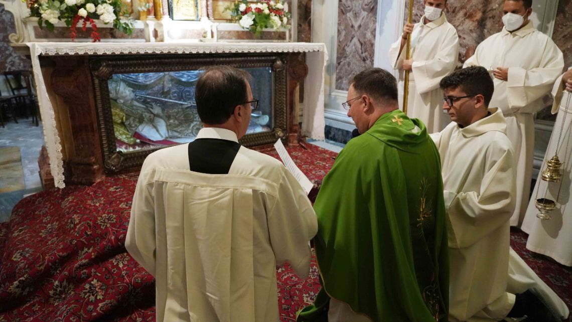 Po trzech godzinach podróży autobusem, uczestnicy przybyli do Pagani i odprawili Świętą Eucharystię, której przewodniczył O. Generał Rogério Gomes CSsR. Modlili się z nami niektórzy członkowie Prowincji Neapolitańskiej i świeccy, którzy uczęszczają do bazyliki św. Alfonsa.