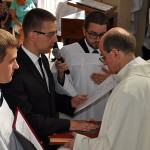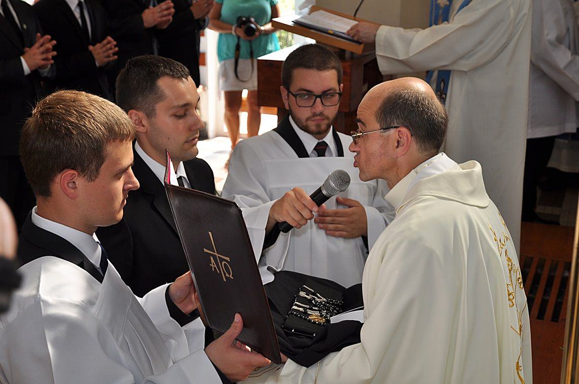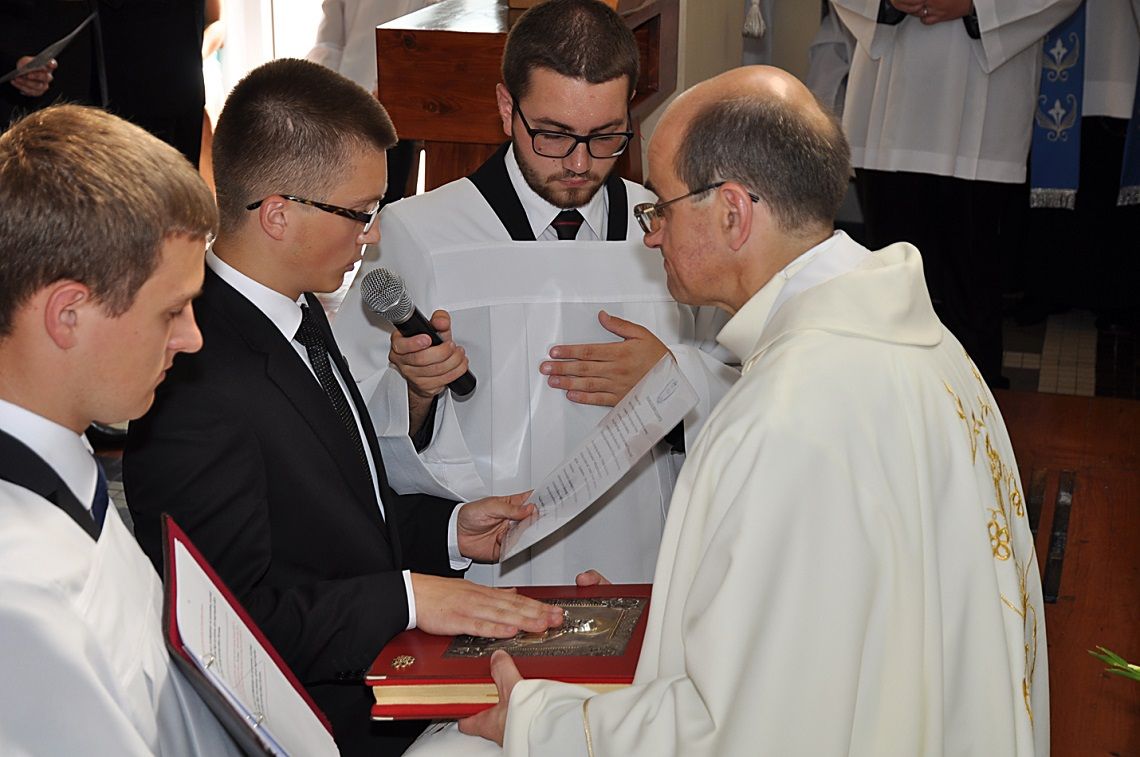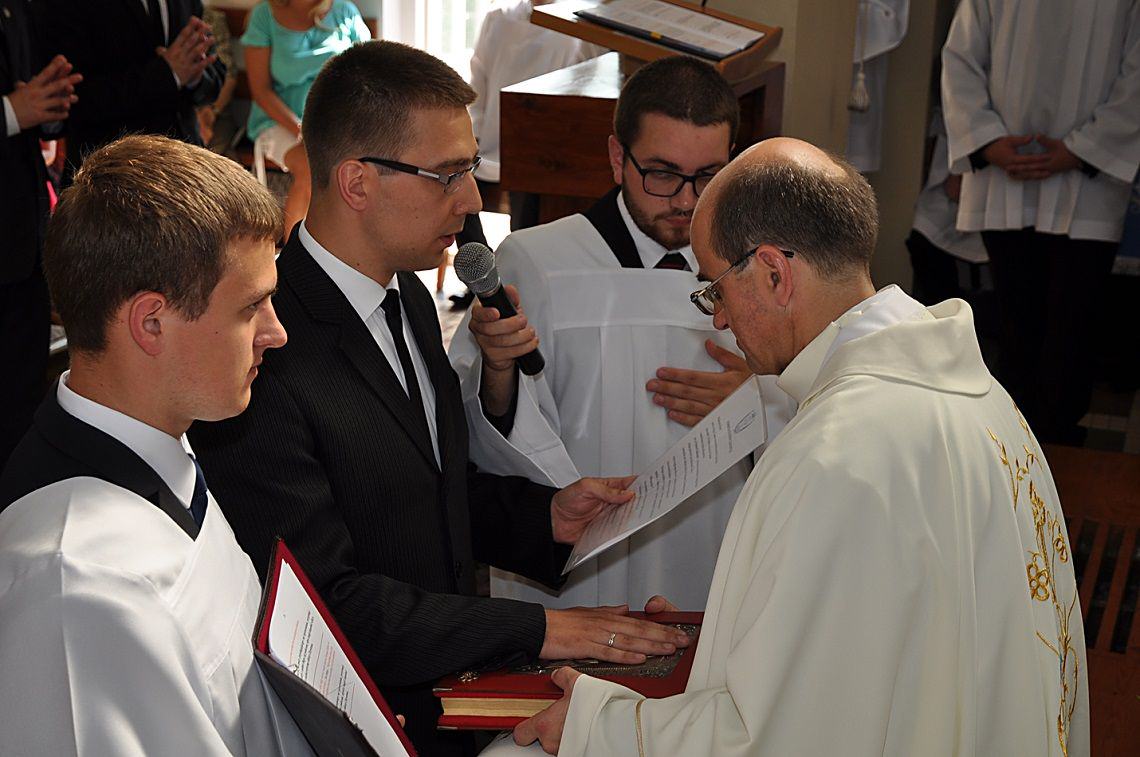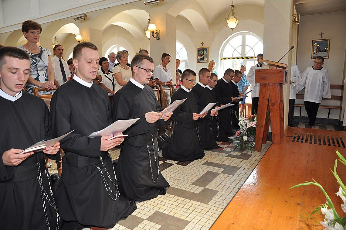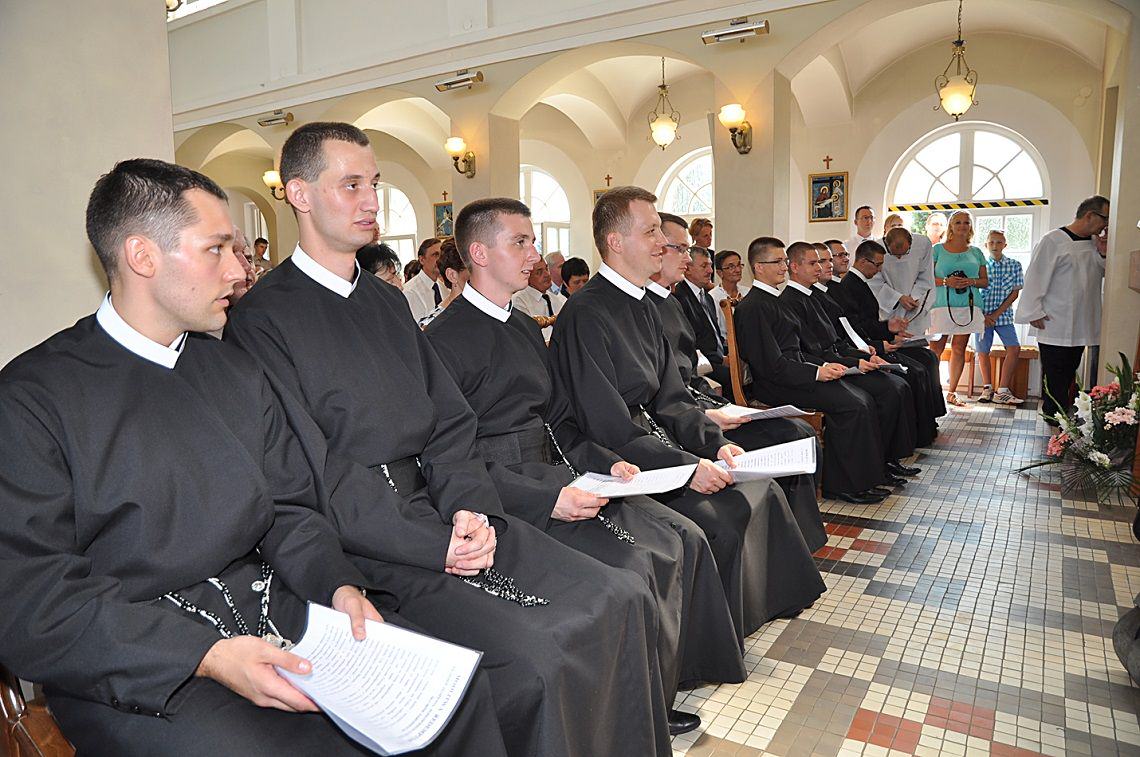 Oto nadszedł długo wyczekiwany dzień! Rankiem, pomimo nieustannie towarzyszących nam upałów, dziesięciu naszych współbraci złożyło swoje pierwsze śluby zakonne. Majestat całej liturgii podkreśliła też obchodzona w ten dzień uroczystość Wniebowzięcia NMP. Przewodniczył jej o. Dariusz Paszyński CSsR – Wiikariusz Przełożonego Prowincji Warszawskiej Redemptorystów, który także wygłosił do zgromadzonych homilię. W Eucharystii udział wzięło blisko dwieście osób. Przeważająca część stanowiła rodzina naszych profesów czasowych. W miarę możliwości przybyli też proboszczowie naszych zacnych braci oraz pełni wdzięczności mieszkańcy Lubaszowej.