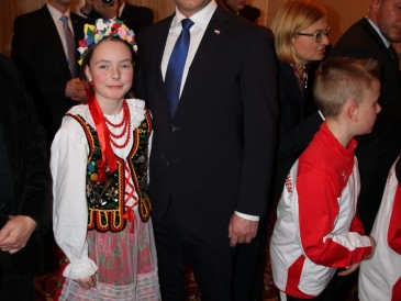 W imieniu najmłodszej generacji monachijskiej Polonii, Pana Prezydenta przywitały dzieci reprezentujące Szkołę Przedmiotów Ojczystych im. Bł. Bpa Michała Kozala oraz Dziecięcy Zespół Pieśni i Tańca „Krakowiak” .
