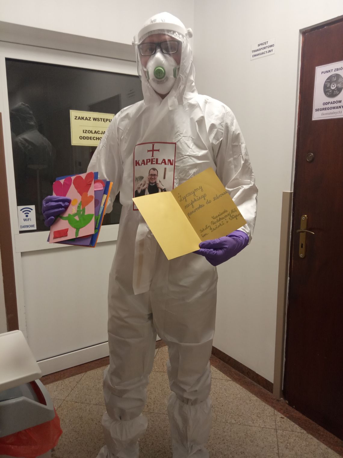 – Poza pracą w szpitalu jestem także katechetą. Uczniowie młodszych klas z mojej szkoły podstawowej gdzie uczę, podczas zajęć na świetlicy przygotowali laurki z życzeniami powrotu do zdrowia dla pacjentów przebywających w szpitalu. Gdy rozdawałem je na oddziałach towarzyszyło temu wielkie wzruszenie. Zwłaszcza starsi pacjenci, którzy mają już wnuki mieli łzy w oczach. Fakt, że ich los nie jest obojętny dla dzieci był dla nich bardzo ważny. Bez ciepłych ludzkich relacji bardzo trudno przetrwać czas choroby, hospitalizacji czy po prostu pandemii.