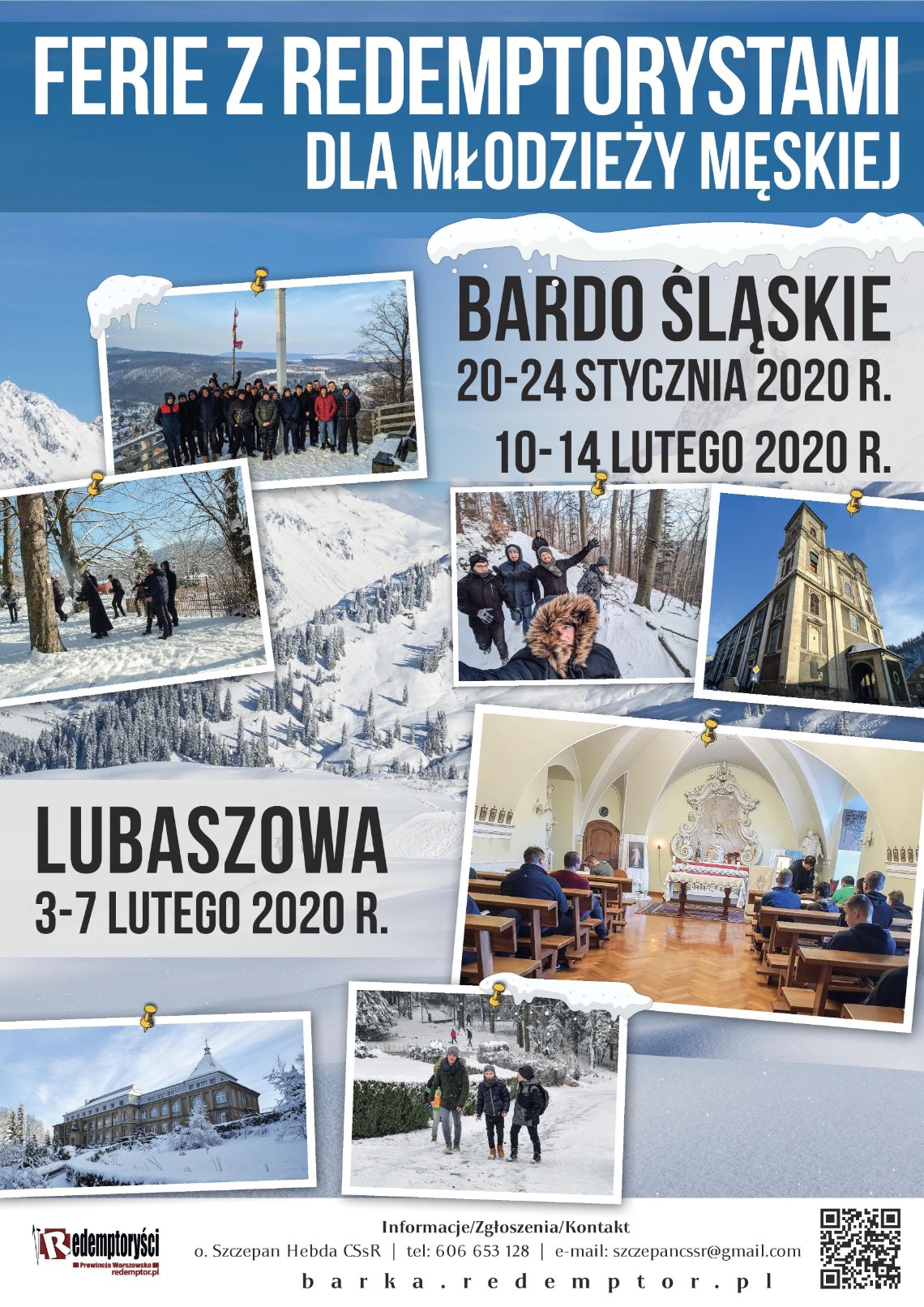 Ponieważ znamy już terminy i miejsca zimowych spotkań z redemptorystami, rozpoczynamy odliczanie do ferii!!! Drogi młody przyjacielu, serdecznie zapraszamy cię na „FERIE Z REDEMPTORYSTAMI” do Lubaszowej lub do Barda.