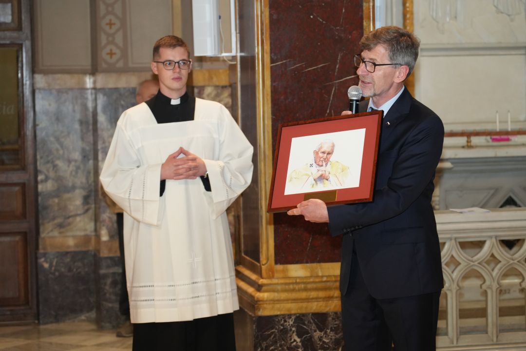 Z kolei prof. Dariusz Dudek, doradca Prezydenta RP, przekazał w imieniu prezydenta pamiątkowy wizerunek św. Jana Pawła II jako dar jubileuszowy, przypominając o papieskiej encyklice Redemptor hominis, w której zawarta jest istota charyzmatu redemptorystów.