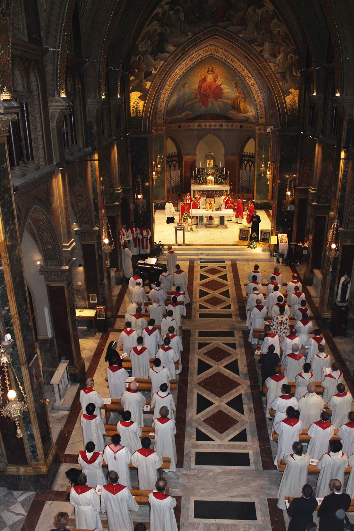 Społeczność akademicka: profesorowie, studenci, pracownicy administracji wraz z przybyłymi gośćmi zgromadzili się najpierw w rzymskim kościele redemptorystów pod wezwaniem św. Alfonsa Liguori, przed ikoną Matki Bożej Nieustającej Pomocy w jubileuszowym roku 150-lecia przywrócenia jej do publicznego kultu, pod przewodnictwem sekretarza Kongregacji Edukacji Katolickiej, J.E. Arcybiskupa Angelo Vincenzo Zani, na uroczyście sprawowanej Eucharystii. Przybyłych na wspólnotową modlitwę przywitał Rektor Akademii prof. Andrzej Wodka CSsR. „Przyjaciół Jezusa” – tak nazwał obecnych – zachęcił do ufnego powierzenia nowego roku akademickiego asystencji Ducha Świętego i wstawiennictwu patrona Akademii św. Alfonsa Liguori, aby poprzez dydaktykę i studium stawać się „świadkami dzieła odkupienia i terapeutami w dzisiejszym poranionym świecie”. Podobne wezwanie skierował do zgromadzonych Sekretarz Kongregacji Edukacji Katolickiej, arcybiskup Zani, który nawiązując w swojej homilii do ewangelii o miłosiernym Samarytaninie zwrócił uwagę na to, iż charakterystyką współczesnego Kościoła powinno być „pochylenie się przed potrzebującym pomocy bliźnim” poprzez konkretne czyny. Kaznodzieja przypomniał, iż działanie chrześcijanina a szczególnie jego postępowanie moralne posiada swoje korzenie w doświadczeniu bycia umiłowanym dzieckiem Boga i jest „dawaniem innym tego życia, które się otrzymało”. Przypomniał przy tym, iż z tego fundamentalnego doświadczenia bycia kochanym przez Boga wypływa cała alfonsjańska teologia moralna. W tym właśnie duchu należy podjąć z zapałem zadanie studiowania problemów współczesnej kultury, aby znajdować odpowiedzi na głód sensu i poszukiwania szczęścia przez dzisiejszego człowieka.