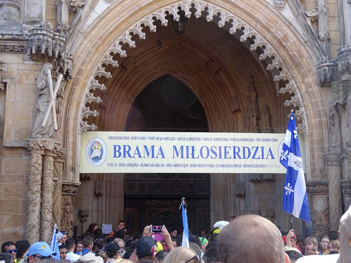 W czasie ŚDM w Roku Miłosierdzia nie mogło zabraknąć czasu na przejście przez Bramę Miłosierdzia. Po śniadaniu udaliśmy się do archikatedry wrocławskiej, by w ten symboliczny sposób wspólnie dziękować za tę Bożą łaskę i prosić o nią. Modliliśmy się także wspólnie „Anioł Pański” z ks. abpem Józefem Kupnym i pozostałymi pielgrzymami (archidiecezja gości ich ok. 10 tys.)