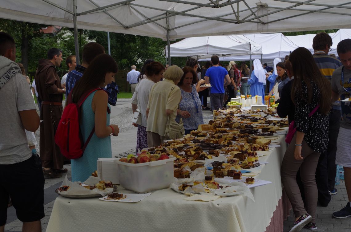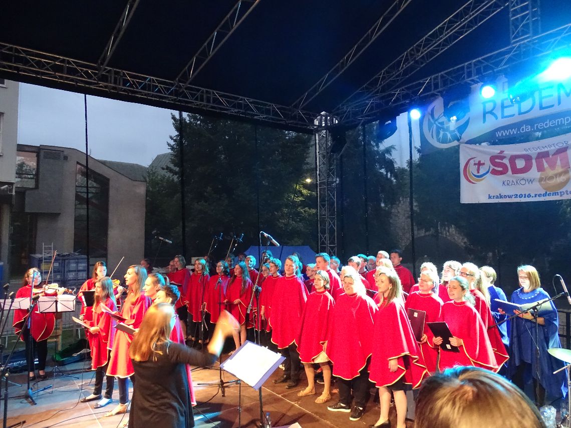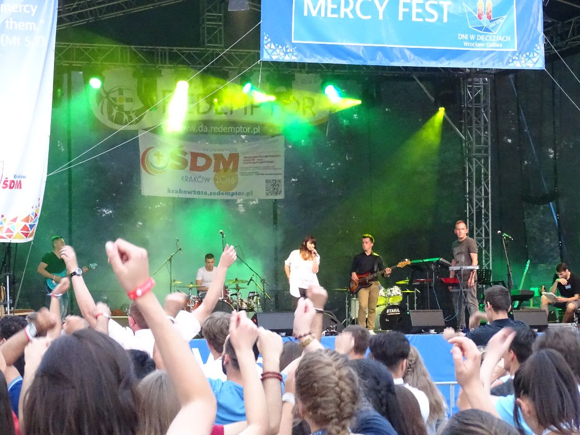 Parafia, pod wodzą swojego proboszcza, o. Damiana Simonicza CSsR, przygotowała wspaniały posiłek dla wszystkich uczestników ŚDM i chętnych. Wieczór wypełnił po raz trzeci Mercy Fest – koncert muzyczny i uwielbienie. Tym razem pięknie zaprezentowały się grupy z Filipin i Singapuru, Argentyny oraz Iraku, a zagrał zespół „Nazaret”.