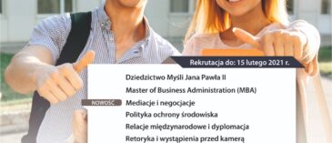 Do 15 lutego 2021 r. trwa rekrutacja na następujące kierunki studiów podyplomowych w Wyższej Szkole Kultury Społecznej i Medialnej w Toruniu. Zapraszamy do studiowania! Z Nowym Rokiem uruchomiona została nowa strona Studiów Podyplomowych WSKSiM: podyplomowe.wsksim.edu.pl/. WSKSiM rekrutuje do 15 lutego na następujące kierunki studiów podyplomowych: • Dziedzictwo myśli Jana Pawła II • Master of Business … Czytaj dalej Studia podyplomowe w WSKSiM w 2021 r.