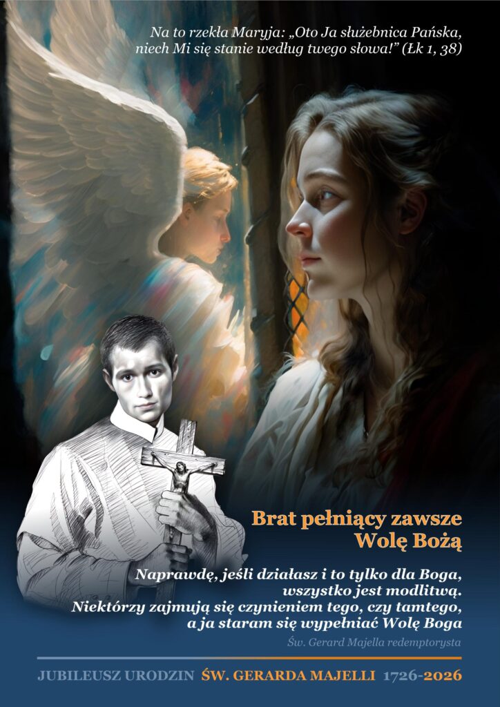 „Naprawdę, jeśli działasz i to tylko dla Boga, wszystko jest modlitwą. Niektórzy zajmują się czynieniem tego, czy tamtego, a ja staram się wypełniać wolę Boga”. Ta dłuższa myśl św. Gerarda Majelli została zamieszczona na listopadowym plakacie promującym Rok Jubileuszowy z okazji 300-lecia jego urodzin. Słowa te pokazują, że w centrum jego duchowości było pragnienie pełnienia woli Bożej.