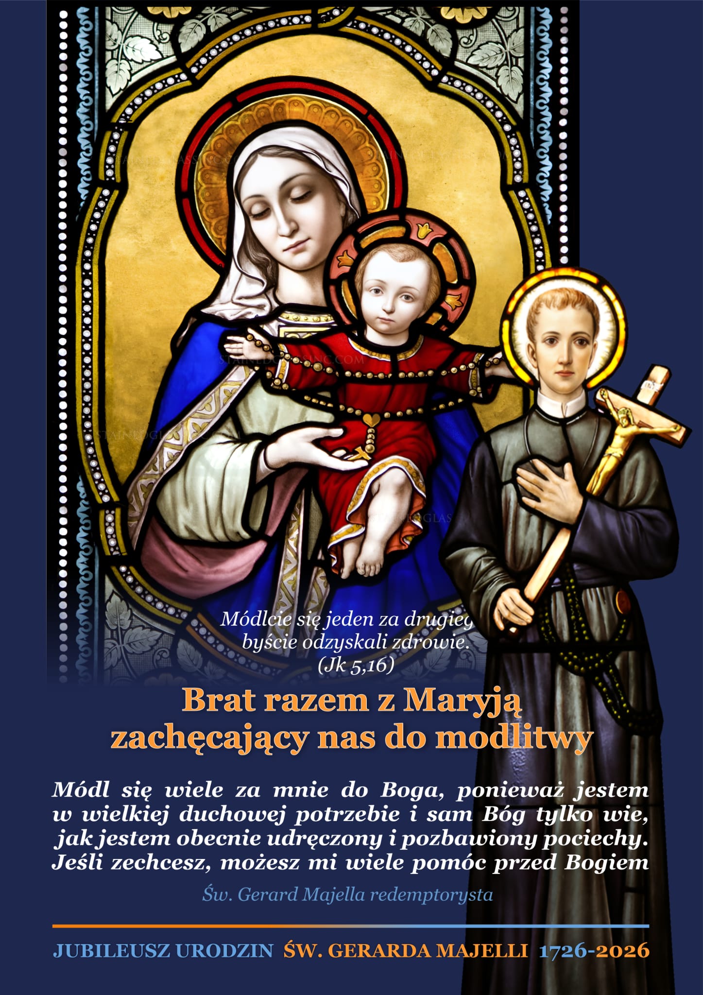 „Naprawdę, jeśli działasz i to tylko dla Boga, wszystko jest modlitwą. Niektórzy zajmują się czynieniem tego, czy tamtego, a ja staram się wypełniać wolę Boga”. Ta dłuższa myśl św. Gerarda Majelli została zamieszczona na listopadowym plakacie promującym Rok Jubileuszowy z okazji 300-lecia jego urodzin. Słowa te pokazują, że w centrum jego duchowości było pragnienie pełnienia woli Bożej.