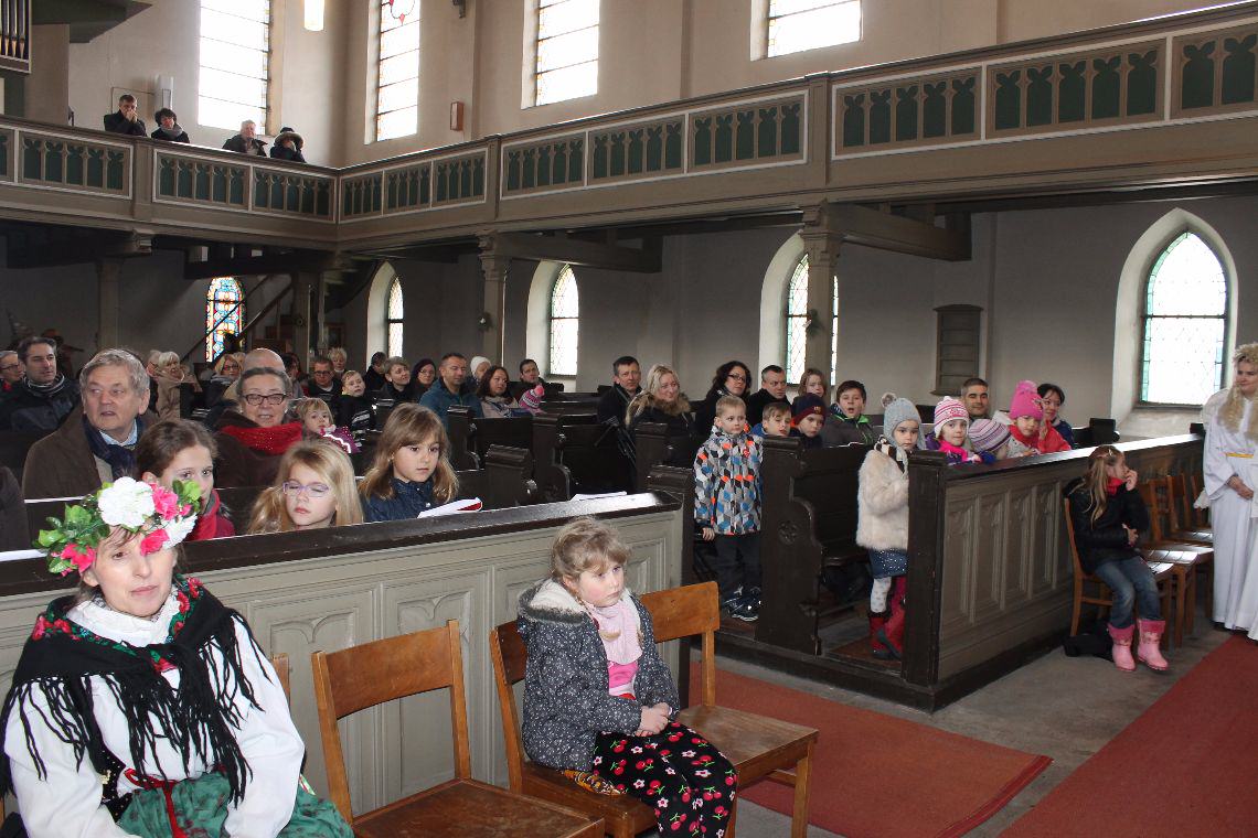 Zrządzeniem Opatrzności (tak na to patrzymy) do Szczecina w ramach odwiedzin swoich współbraci przyjechał o. Grzegorz Mazur CSsR, który na co dzień posługuje w Niemczech, w nieodległym od nas Passewalk, a raz w tygodniu – w niedzielę przyjeżdża na Eucharystię dla Polaków zamieszkałych w Löcknitz. Zafascynowany jasełkami zaprosił nas, byśmy przyjechali i odegrali historię Bożego Narodzenia również tam, gdzie żyją i mieszkają Polacy. Po Mszy Świętej sporo wiernych zostało, by zobaczyć nasze przedstawienie.