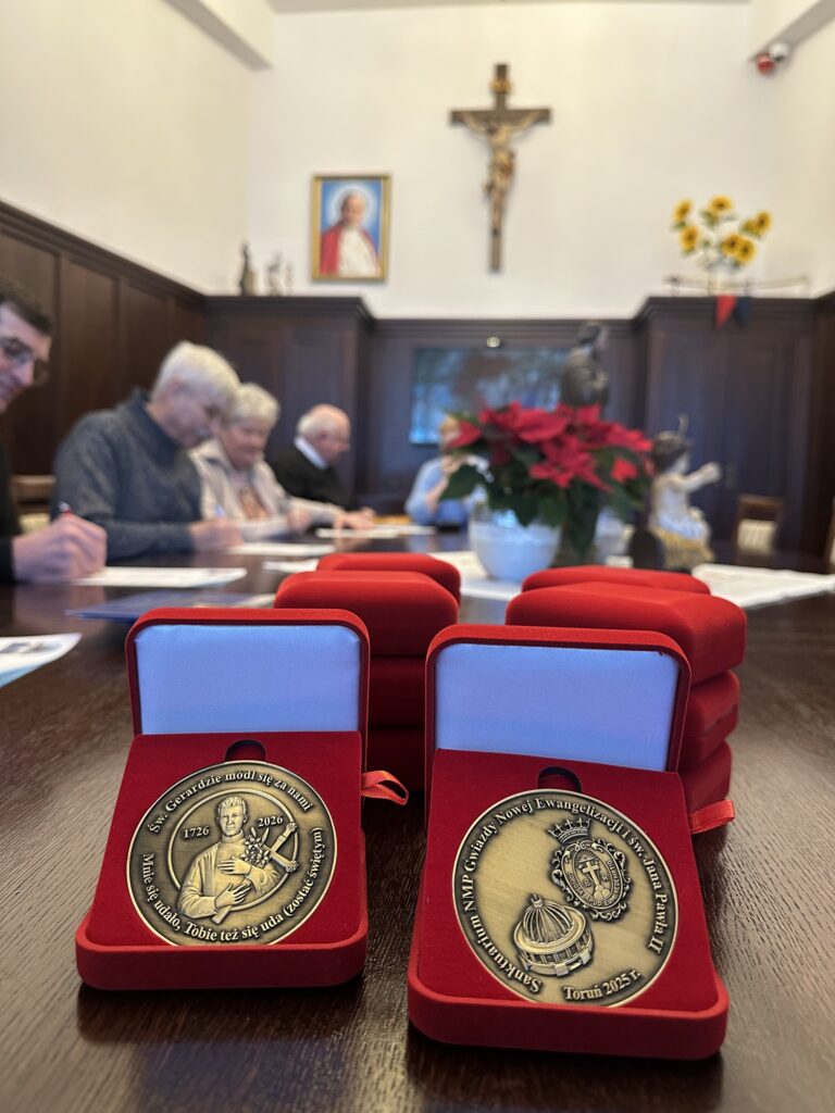 Wspólnota Matki Bożej Pompejańskiej przy sanktuarium NMP Gwiazdy Nowej Ewangelizacji i św. Jana Pawła II w Toruniu po zapoznaniu się z postacią św. Gerarda Majelli, którego 300-lecie urodzin obchodzimy (1726-2026), oraz nowennie pompejańskiej w int. powołań zakonnych postanowiła uhonorować pamiątkowym medalem Roku Św. Gerarda braci zakonnych redemptorystów.