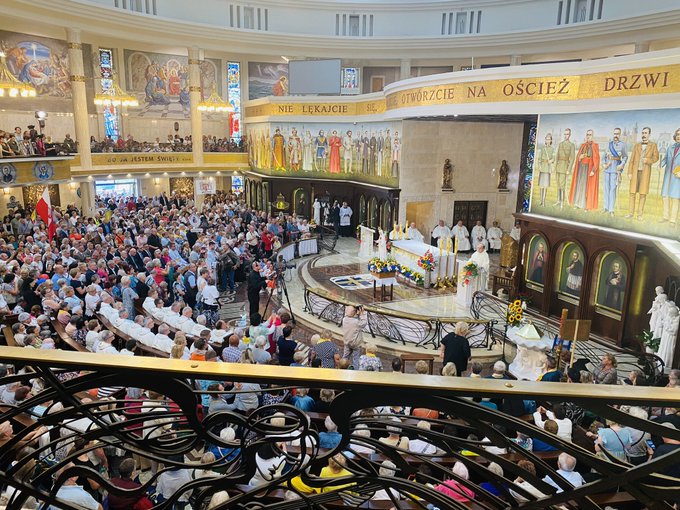 W sanktuarium Najświętszej Maryi Panny Gwiazdy Nowej Ewangelizacji i św. Jana Pawła II w Toruniu Rodzina Radia Maryja rozpoczęła wspólne świętowanie. Rozpoczęła tym, co najważniejsze, czyli uroczystą Eucharystią. Była ona dziękczynieniem Matce Bożej za Jej opiekę nad Radiem Maryja oraz wszystkimi dziełami, które przy nim powstały.