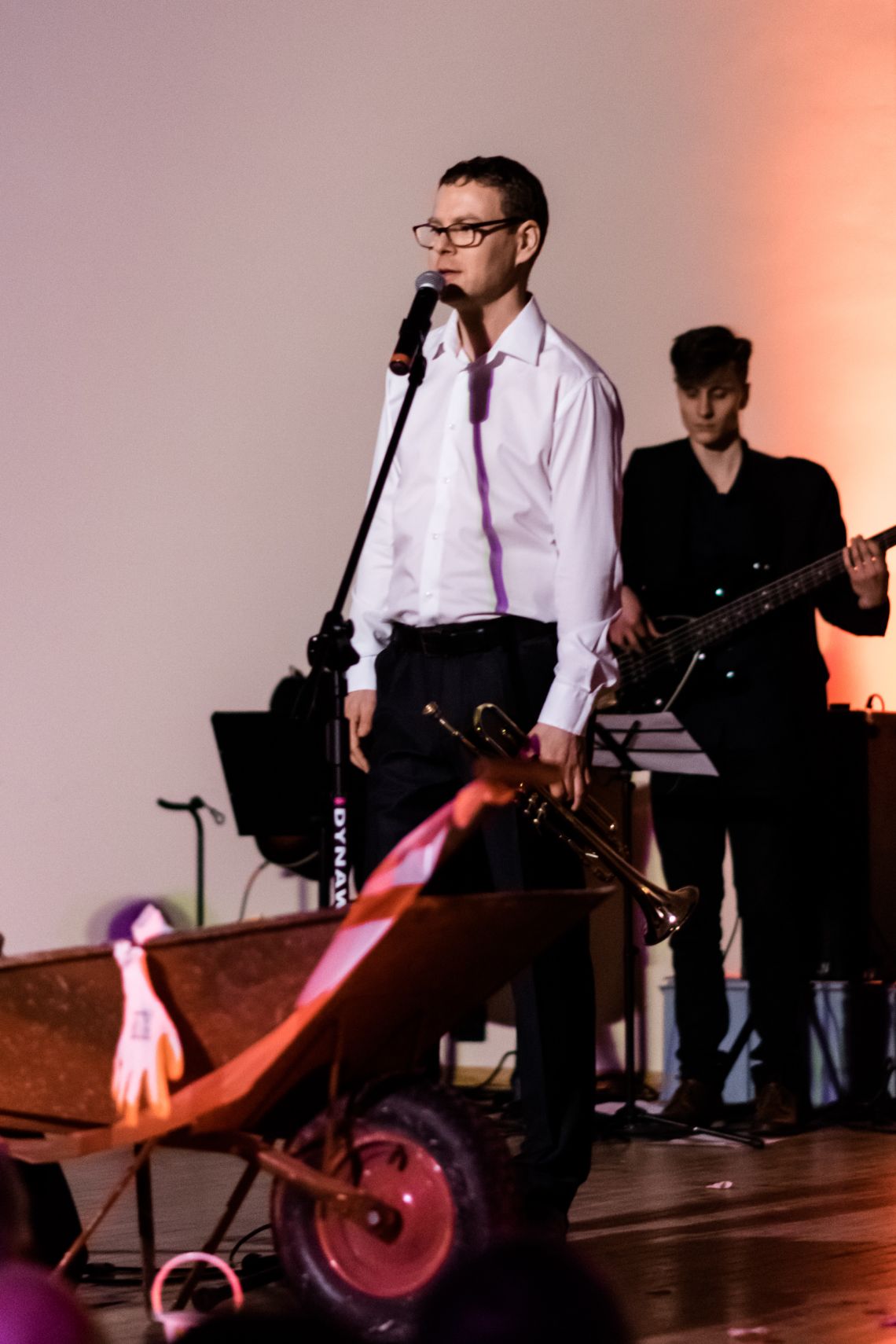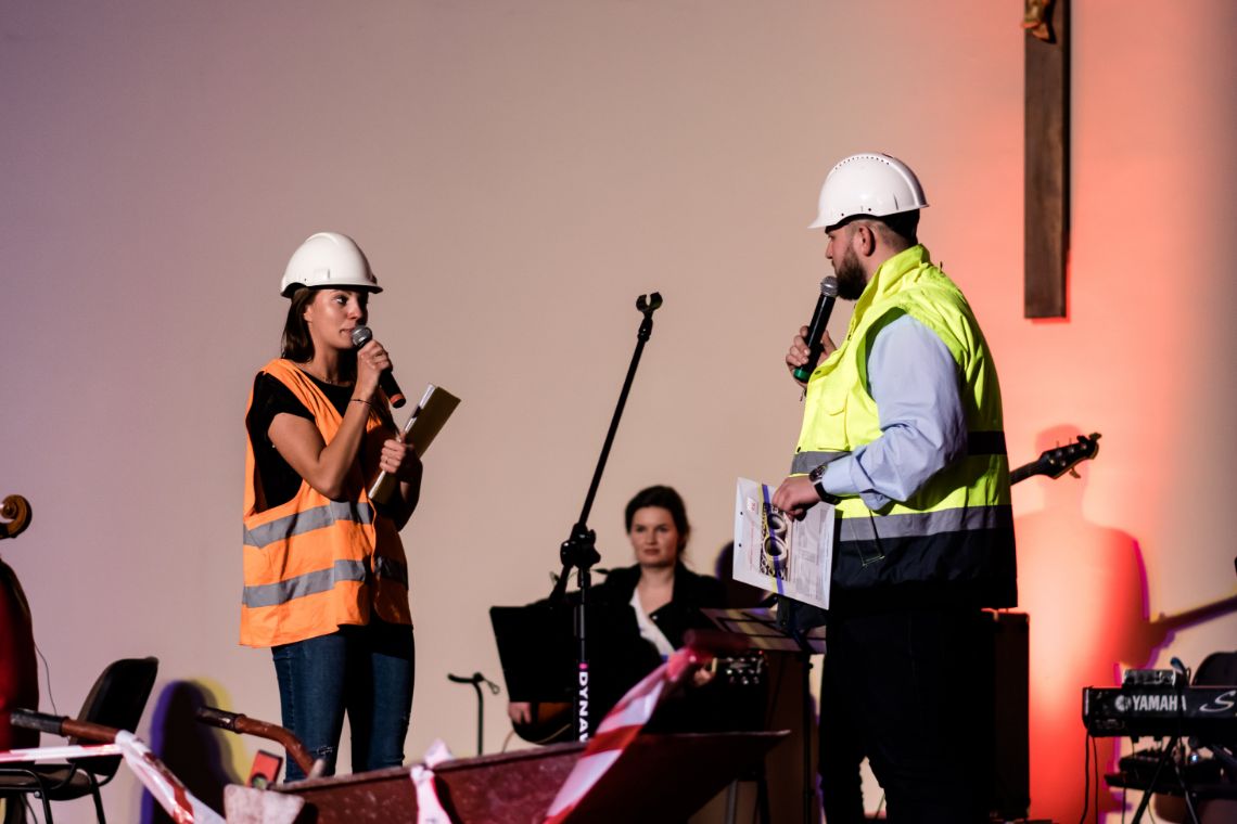 Zaproszonych gości przywitał widok taczki, taśmy, tablicy informacyjnej. W specyficznej scenerii konferansjerzy Kornelia Paszak i Jakub Pruszek przedstawili historię pary, która poznaje się na budowie. W doskonały sposób wprowadzali nas w romantyczny nastrój.