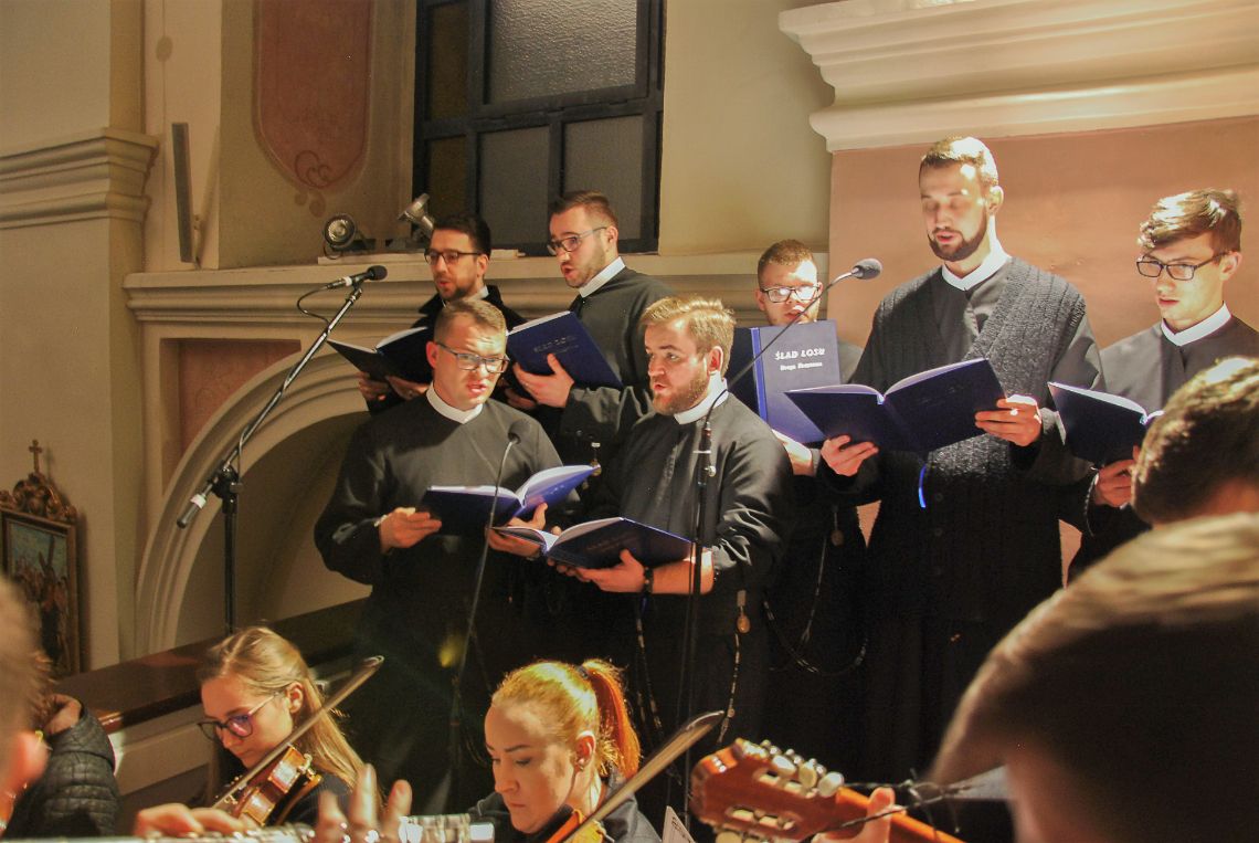 22 marca 2019 r. w tuchowskiej bazylice uczestniczyliśmy, wraz z parafianami w nabożeństwie Drogi Krzyżowej „Ślad losu”, śpiewanej przez naszych kleryków WSD. Nastąpiła ona bezpośrednio po wieczornej Mszy św. W medytacji nad Męką Pańską pomogli nam przyjaciele z zespołu „Misericordes” z Limanowej, wspierając naszych alumnów wokalnie oraz instrumentalnie.