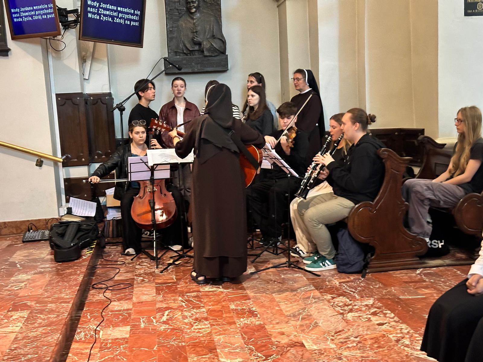 Zespół muzyczny z Żywca z siostrą Małgorzatą zadbał o oprawę muzyczną Mszy świętej oraz o adorację Najświętszego Sakramentu. Wspólnie prosiliśmy Boga o przemianę naszych serc oraz przez ręce Tuchowskiej Pani błagaliśmy o dar licznych i świętych powołań kapłańskich i zakonnych.
