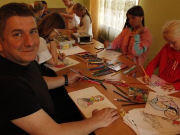 Tradycyjnie, na zakończenie rekolekcji, każdy uczestnik otrzymał skromny prezent: przybory szkolne na nadchodzący rok. To piękny zwyczaj, który już chyba na stałe zagościł jako zwieńczenie naszych wyjazdów. Przybory szkolne pozyskujemy przez cały rok, głównie ze szkół i przedszkoli, ale również zgłaszają się do nas osoby indywidualne z pragnieniem obdarowania dzieci na Wschodzie jakimś drobiazgiem.